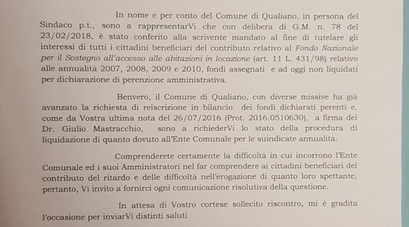 Ad un anno dalla nomina del legale Vittoria Pirozzi arriva il risultato per i cittadini di Qualiano beneficiari del contributo. L’ex Sindaco: “Mi sarei aspettato almeno un grazie al legale, invece, l’attuale Amministrazione si accredita un risultato per qualcosa che non ha fatto”